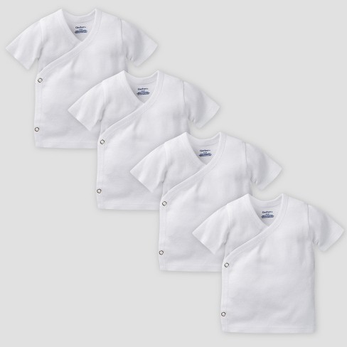 These white side snap undershirts are just as easy to put on as they are soft against your baby s skin. Size 6 months fits 12 1 5 16 1 2 pounds 24 26 1 2. Does anyone know where i can find simple white cotton shirts for a newborn. These white side snap undershirts are just as easy to put on as they are soft against your baby s skin.